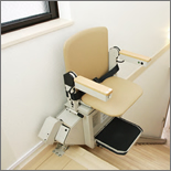 | 家庭の階段にレールと椅子を取り付けて階段をラクラク・安全に昇降できる機械です。 |